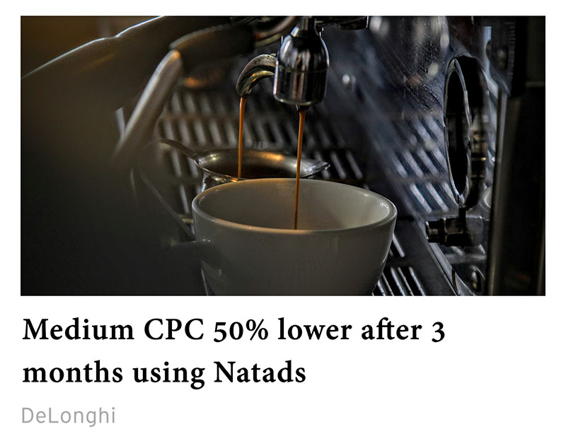 Natads automatically optimizes ads and campaigns to boost the ones with lower costs and higher conversions. After a short adaptation phase, we can reach CPC well below the market average.